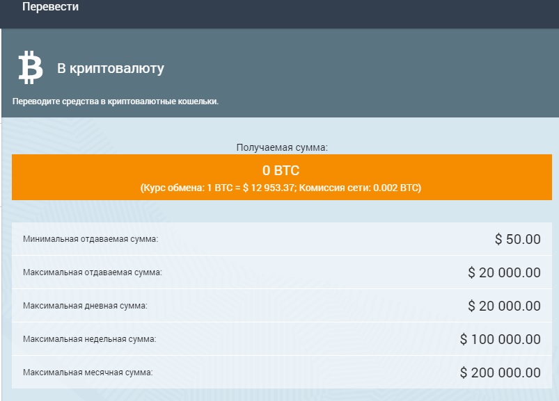 И там, кстати, можно переводить не только в биткоин, а еще в биткоин кэш, лайткоин и эфир, там комиссия сети может быть меньше.